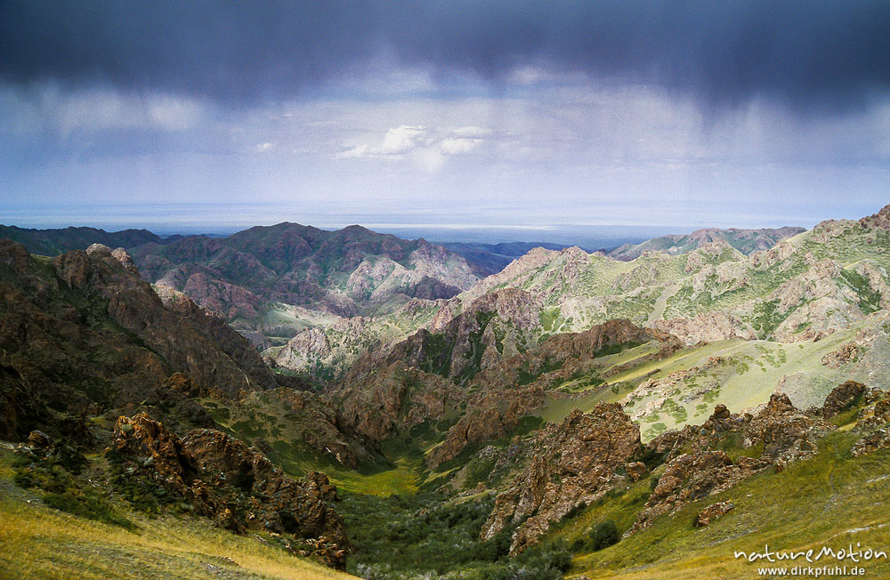 Gurwan Saichan Berge nahe Jolyn Am Schlucht (Geier-Schlucht), Regenwolken ,