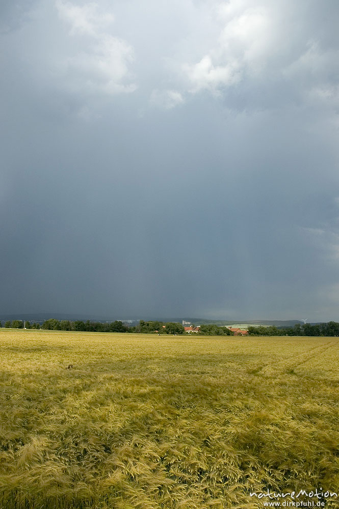 Gut Rheinshof, Leinetal, Weizenfeld, abziehendes Gewitter, Göttingen, Deutschland