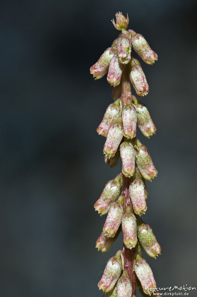 Hängendes Nabelkraut, Venusnabel, Umbilicus rupestris, Dickblattgewächse (Crassulaceae), Blütenstand, mit felsen durchsetzter Kiefernwald, Restonica-Tal, Korsika, Frankreich