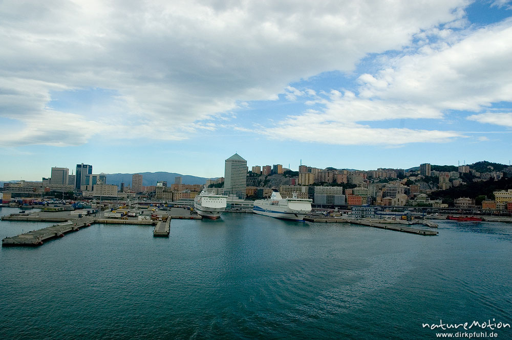 Hafen von Genua, Blick von der Fähre Genua-Bastia aus Genua, Italien
