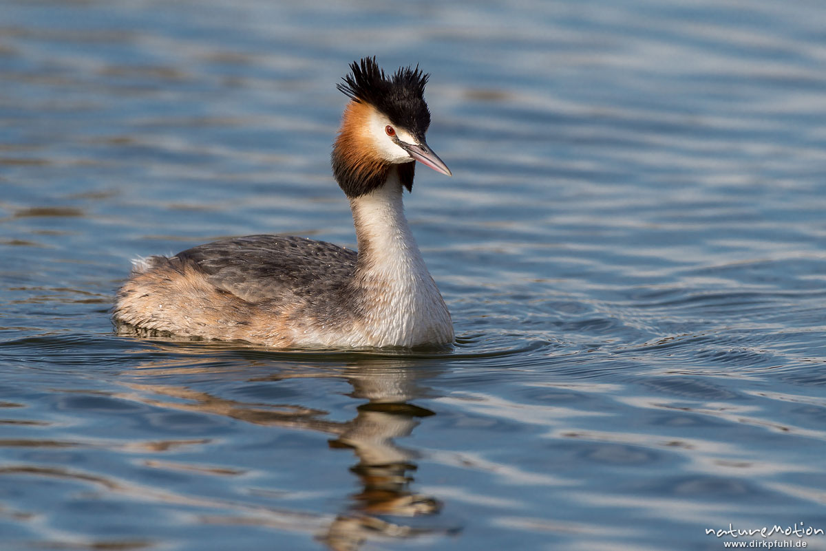 Haubentaucher, Podiceps cristatus, Podicipedidae, schwimmend, Kiessee, Göttingen, Deutschland