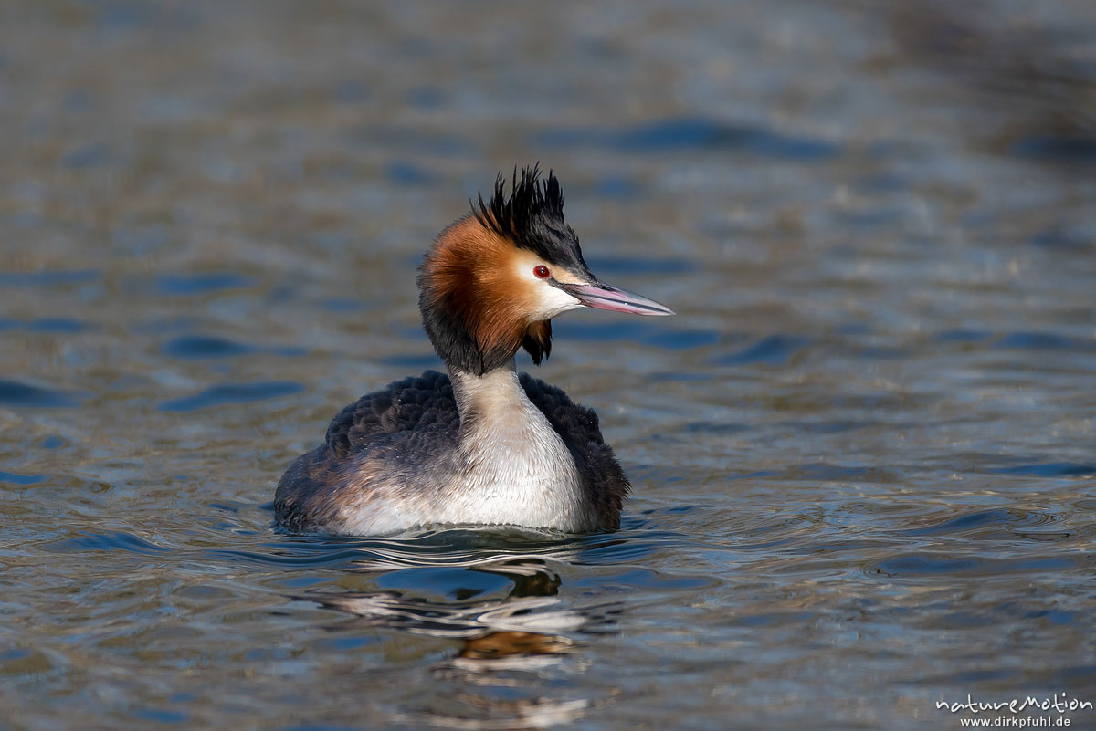 Haubentaucher, Podiceps cristatus, Podicipedidae, schwimmend, Kiessee, Göttingen, Deutschland