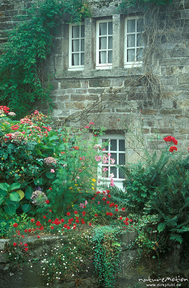 Hausfassade und Garten, Pont-Aven, Bretagne, Frankreich