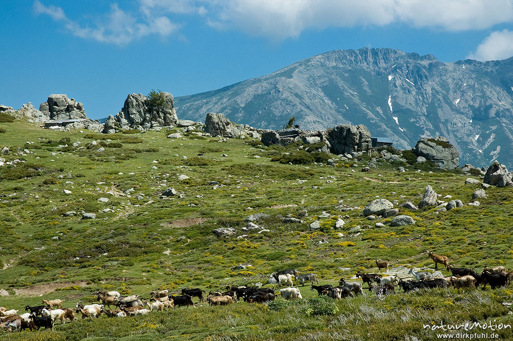 Hausziege, Capra hircus, Bovidae, Ziegenherde, Plateau d'Alzo Korsika, Frankreich