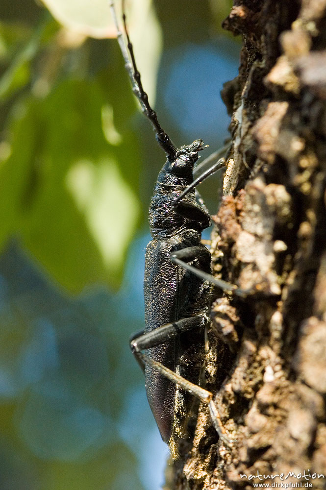 Heldbock, Großer Eichenbock, Cerambyx cerdo, an Steineiche, Campingplatz l'Asciasgju nähe Plage de Palombaggia, Korsika, Frankreich