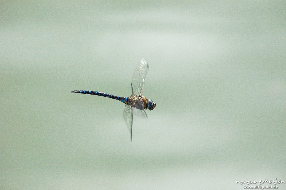 Herbst-Mosaikjungfer, Aeshna mixta, Aeshnidae, in Flug, Rosdorfer Tonkuhlen, Göttingen, Deutschland
