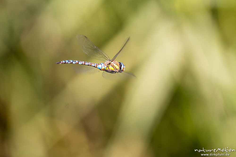 Herbst-Mosaikjungfer, Aeshna mixta, Aeshnidae, Männchen im Flug, Klärschlammvererdungsanlage, Heringen, Deutschland