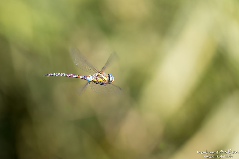 Herbst-Mosaikjungfer, Aeshna mixta, Aeshnidae, Männchen im Flug, Klärschlammvererdungsanlage, Heringen, Deutschland