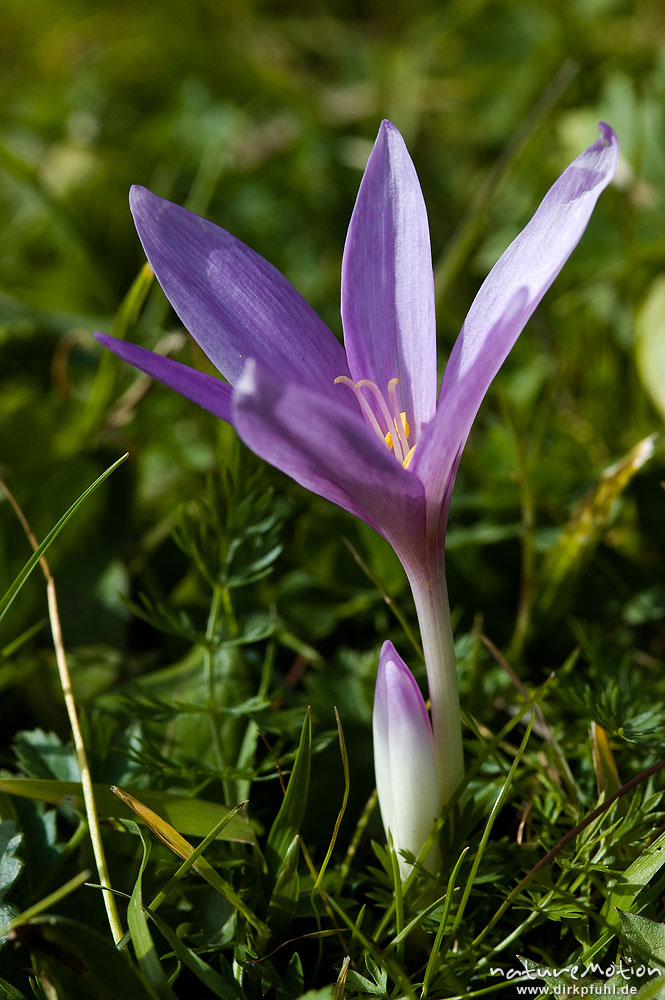 Herbstzeitlose, Colchicum autumnale, Liliaceae, Blüte mit Antheren, Wiese, Geroldsee Klais Oberbayern, Deutschland
