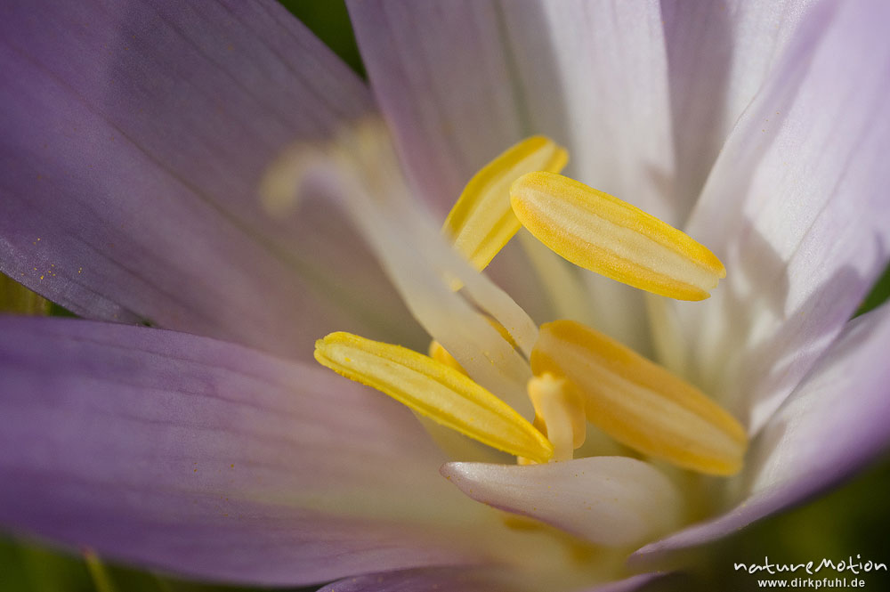 Herbstzeitlose, Colchicum autumnale, Liliaceae, Blüte mit Antheren, Wiese, Geroldsee, Klais Oberbayern, Deutschland