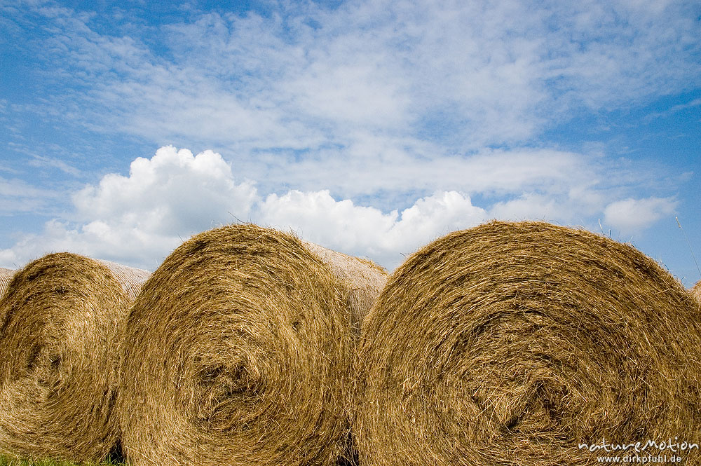 Heurollen und Wolken, bei Waren Müritz, Deutschland