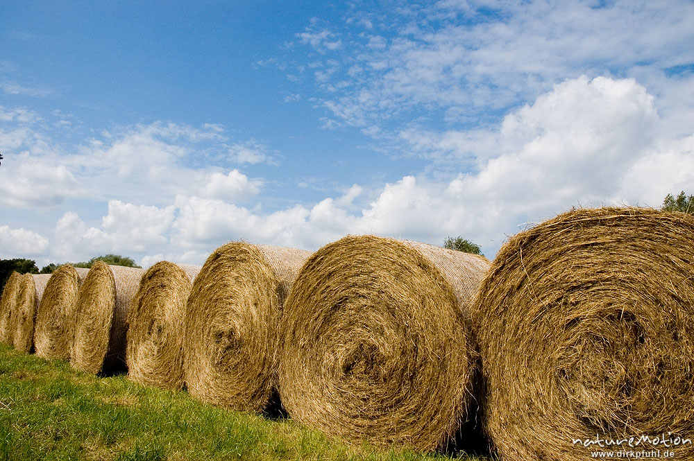 Heurollen und Wolken, bei Waren Müritz, Deutschland