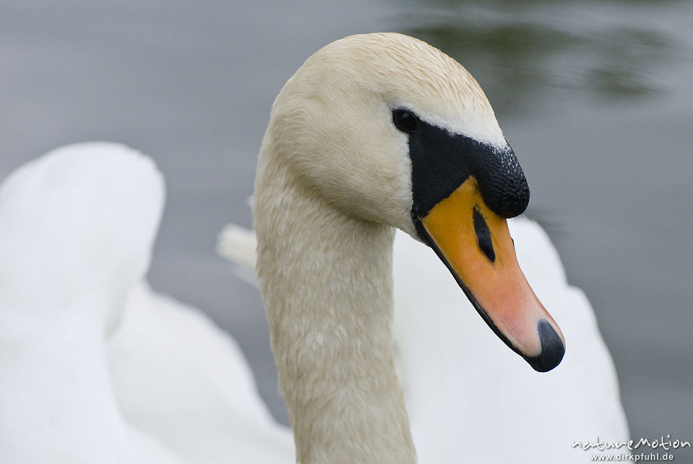 Höckerschwan, Cygnus olor, Entenvögel (Anatidae), Männchen, Kopf, Werra, A nature document – not arr, Probstei Zella, Deutschland