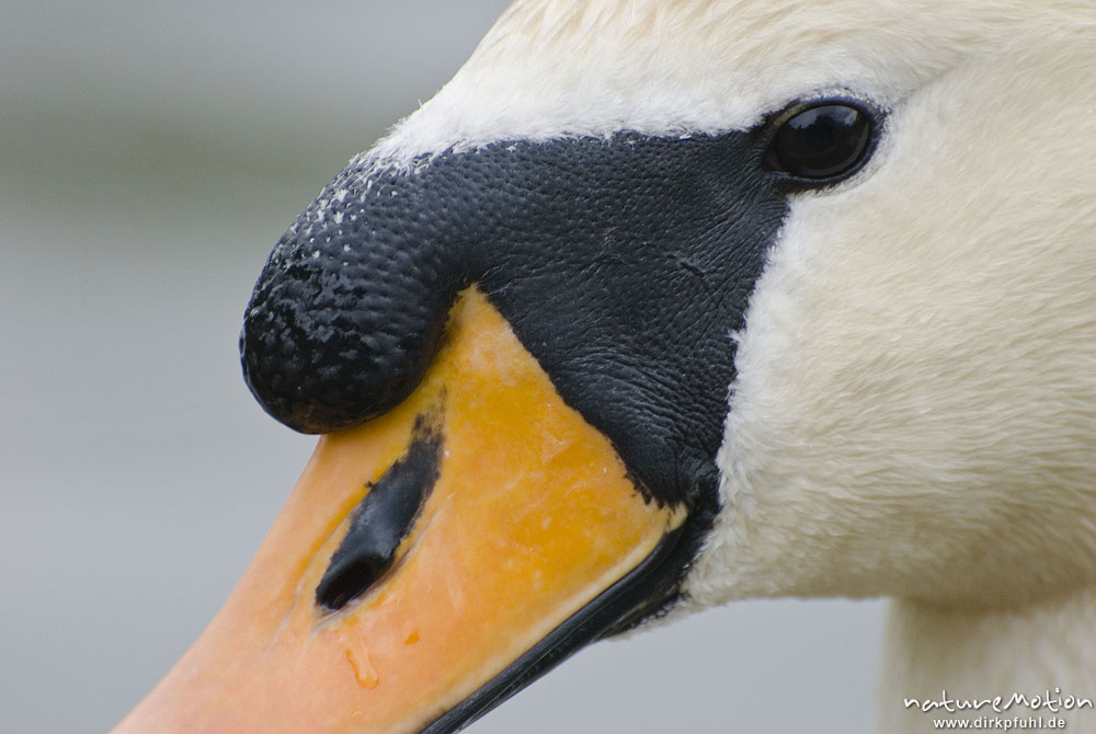 Höckerschwan, Cygnus olor, Entenvögel (Anatidae), Männchen, Kopf, Werra, A nature document - not arranged nor manipulated, Probstei Zella, Deutschland
