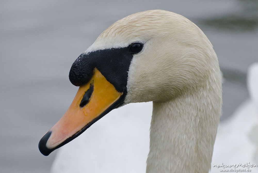 Höckerschwan, Cygnus olor, Entenvögel (Anatidae), Männchen, Kopf, Werra, A nature document - not arranged nor manipulated, Probstei Zella, Deutschland