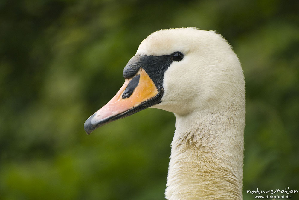 Höckerschwan, Cygnus olor, Entenvögel (Anatidae), Weibchen beim brüten auf Nest, Werra, A nature document - not arranged nor manipulated Hinweis: Dieses Nest befand sich in 2 m (!) Entfernung von einer befestigten Einsatzstelle für Wasserwanderer. Das Schwanenpaar ließ sich nicht von den in direkter Nähe befindlichen Menschen stören, den Fotografen eingeschlossen., Probstei Zella, Deutschland