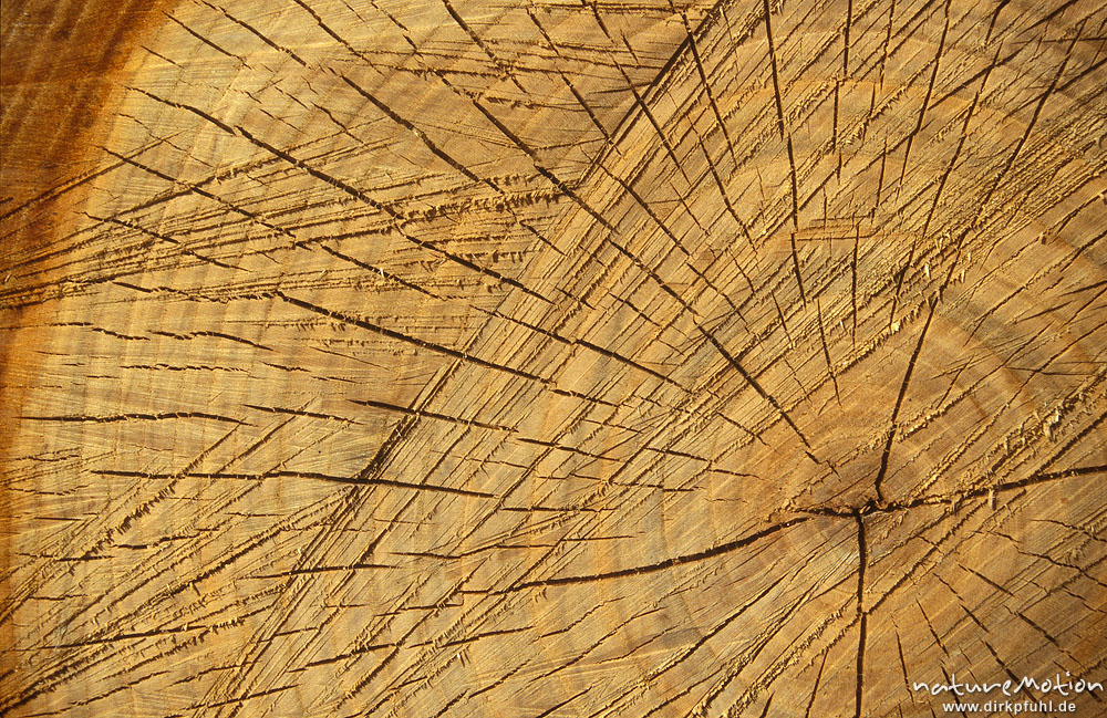 Jahresringe, Schnittfläche eines Kirschbaums, bei Witzenhausen, Witzenhausen, Deutschland