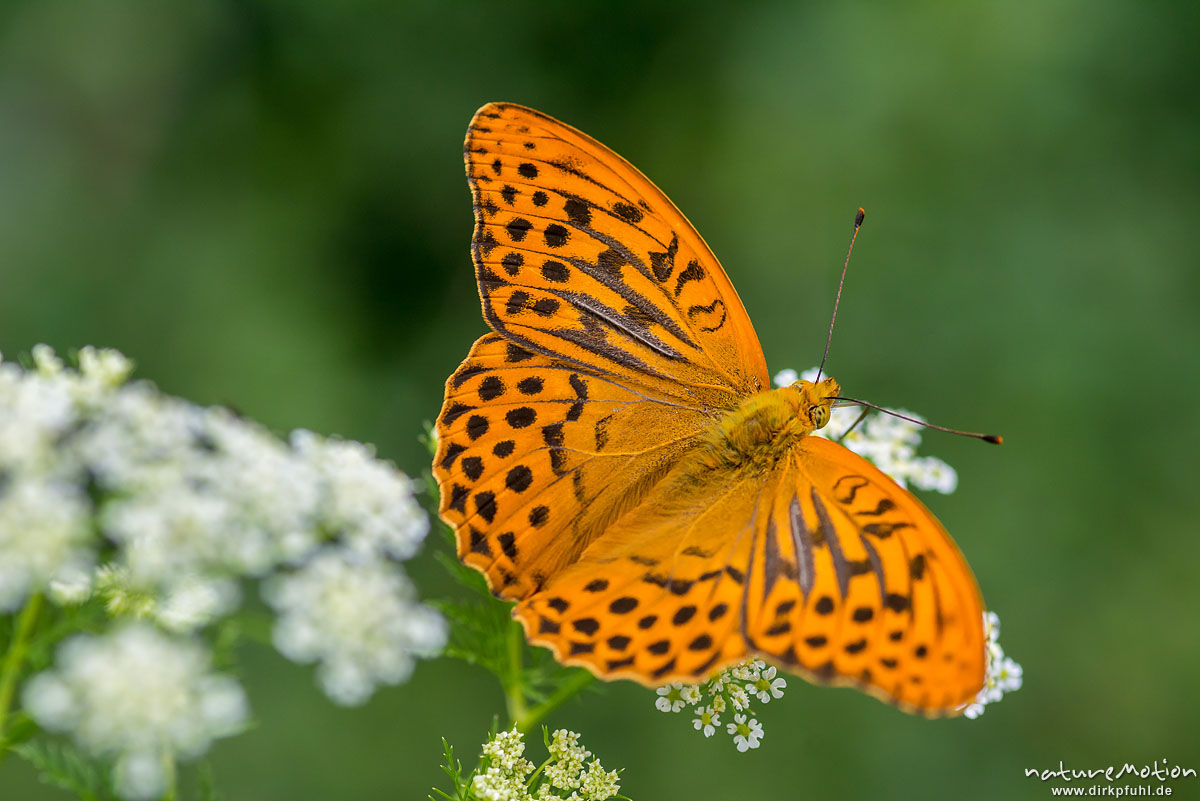 Kaisermantel, Argynnis paphia, Nymphalidae, Männchen, auf Wiesen-Kerbel, Waldrand, Reinhausen bei Göttingen, Deutschland