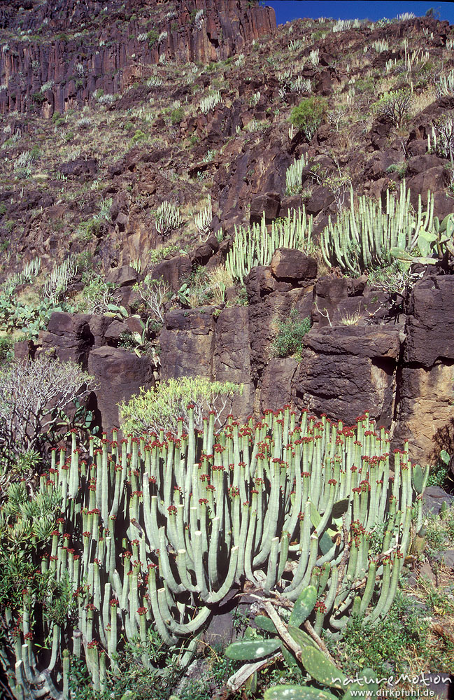 Kanaren-Wolfsmilch, Euphorbia canariensis, an Felshang, Valle Gran Rey, Gomera, Spanien