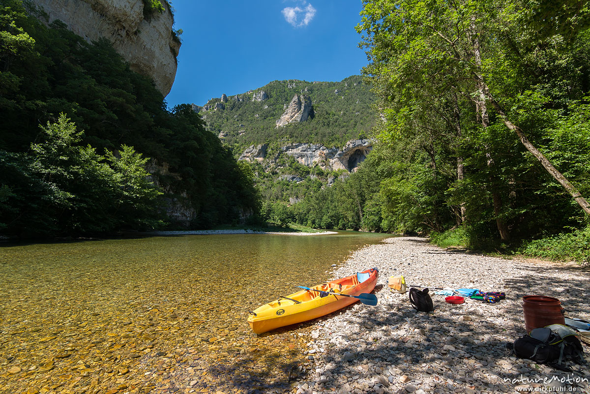 Kanutour auf dem Tarn, Gorges du Tarn zwischen La Malène und Les Vignes, Florac, Frankreich