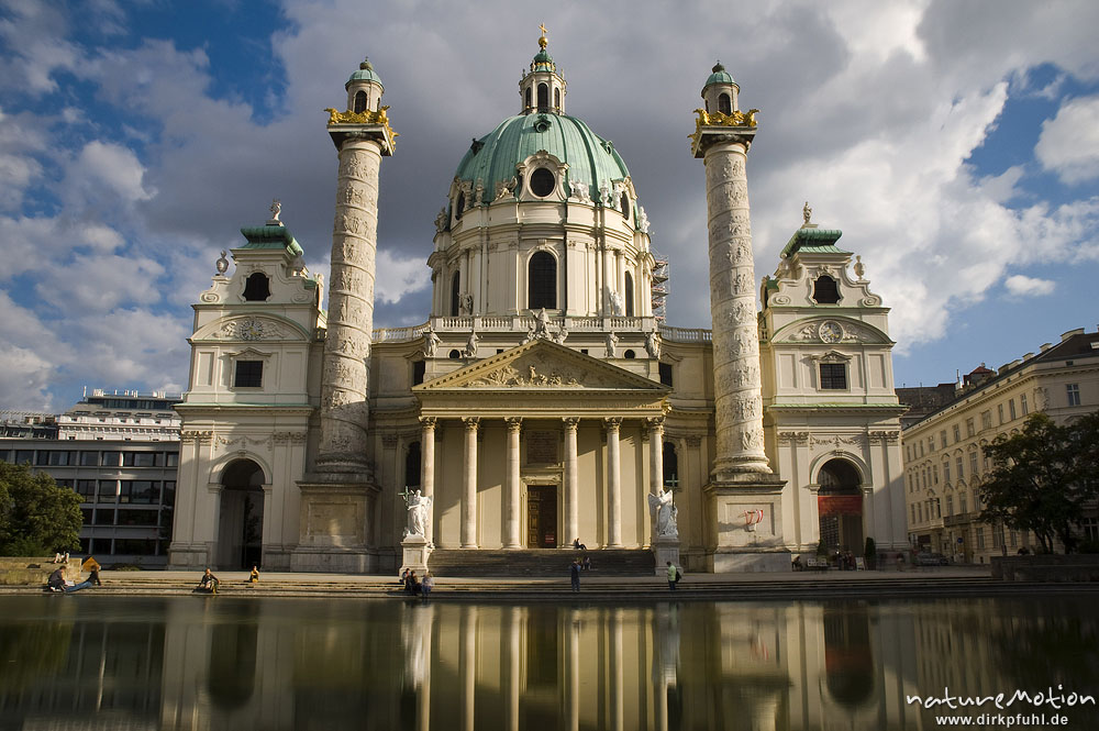Karlskirche, Barockdom mit Teich, Wien Vienna, Östereich