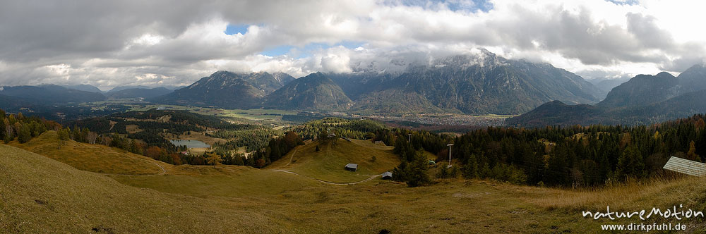 Karwendel, Isartal und Wildensee, Blick vom Hohen Kranzberg, Mittenwald Oberbayern, Deutschland