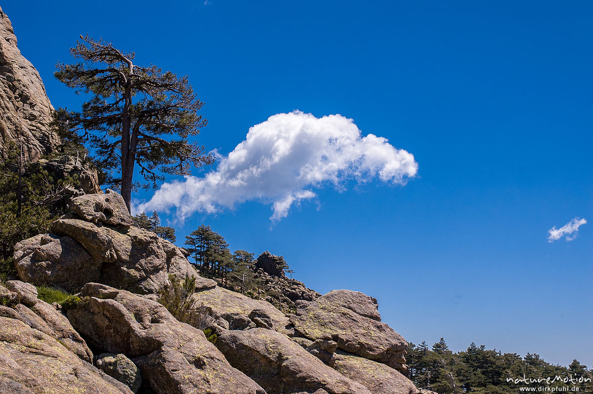 Kiefer zwischen Felsen, Himmel, Bavella Korsika, Frankreich