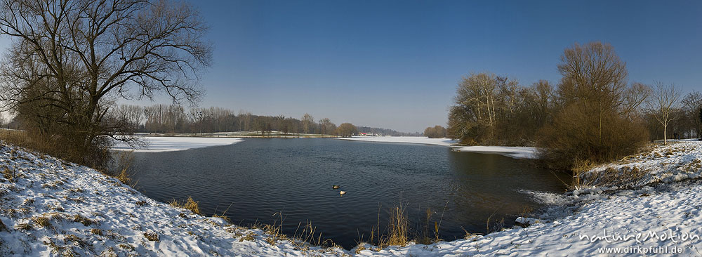 Kiessee mit Eisdecke und offenen Stellen, blauer Himmel, Göttingen, Deutschland