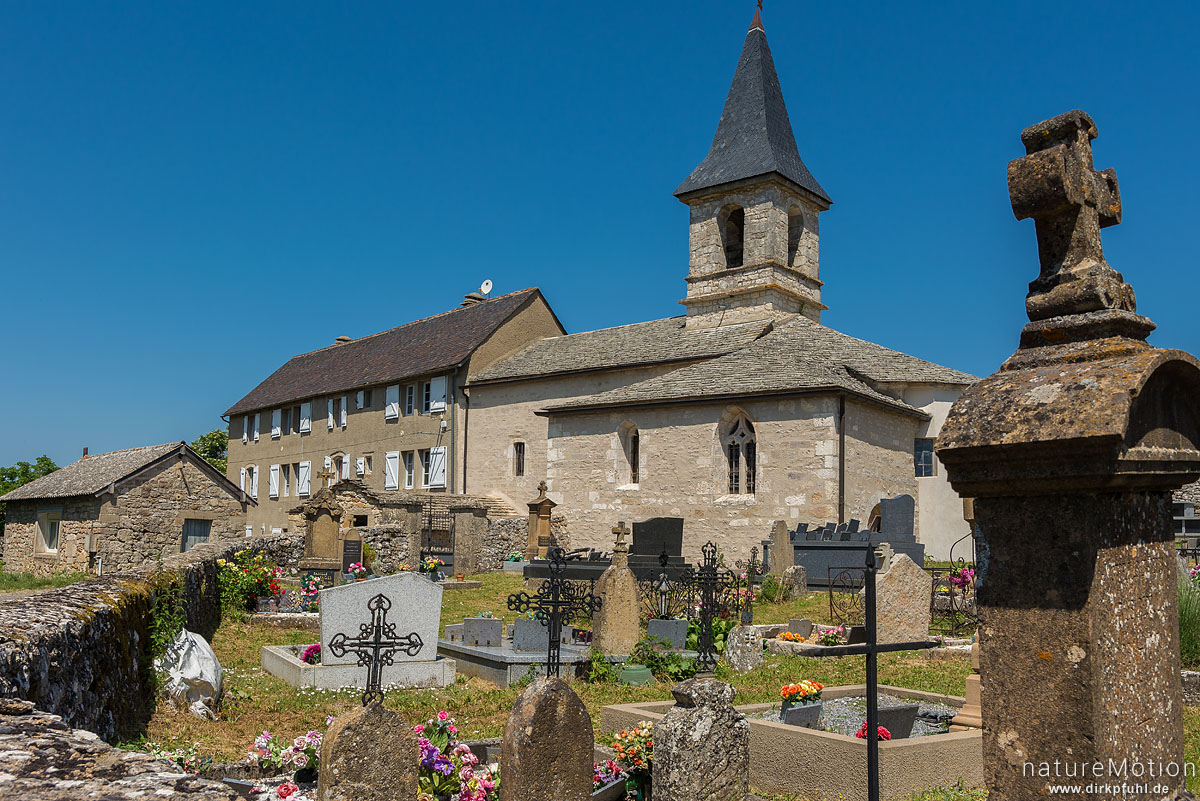 Kirche und Friedhof von Hures, Causees Mejean, Florac, Frankreich