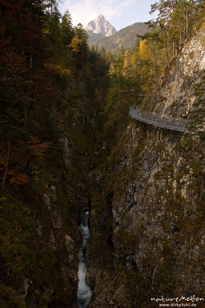 Klamm mit stählernem Steg, Leutaschklamm, Mittenwald Oberbayern, Deutschland