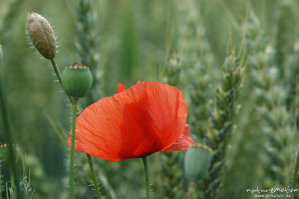 Klatsch-Mohn, Papaver rhoeas, Papaveraceae, Blüte an Ackerrand, Weizen Göttingen, Deutschland