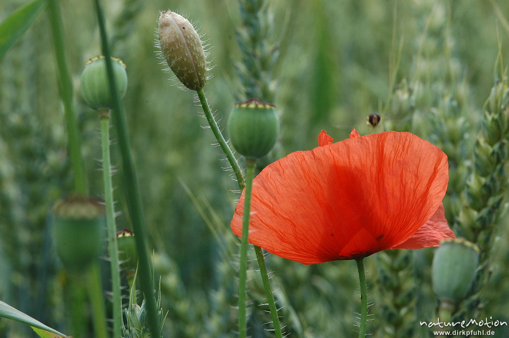 Klatsch-Mohn, Papaver rhoeas, Papaveraceae, Blüte an Ackerrand, Weizen Göttingen, Deutschland