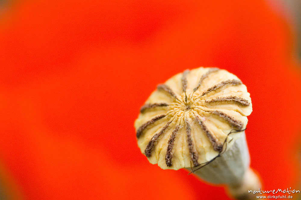 Klatsch-Mohn, Papaver rhoeas, Papaveraceae, Blüte mit Fruchtknoten, Plage d'Arone Korsika, Frankreich
