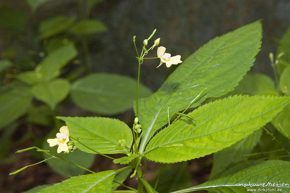 Kleinblütiges Springkraut, Impatiens parviflora, Balsaminaceae, Wald bei Ankershagen, Müritz, Deutschland