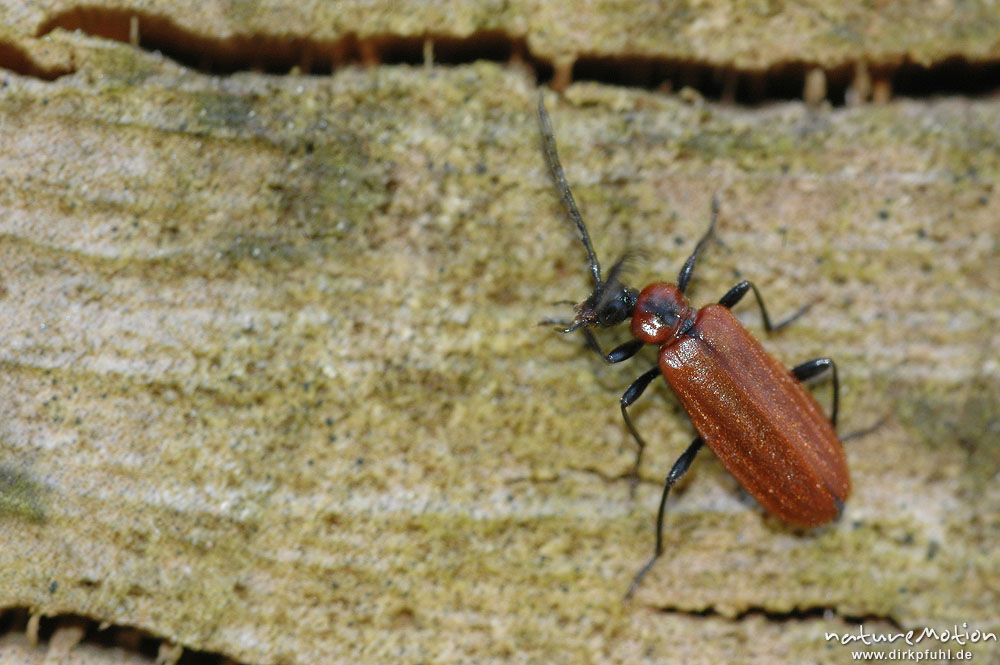 Kleiner Feuerkäfer, Schizotus pectinicornis, an Totholz, Buntkäfer - Cleridae Seeburger See, Deutschland