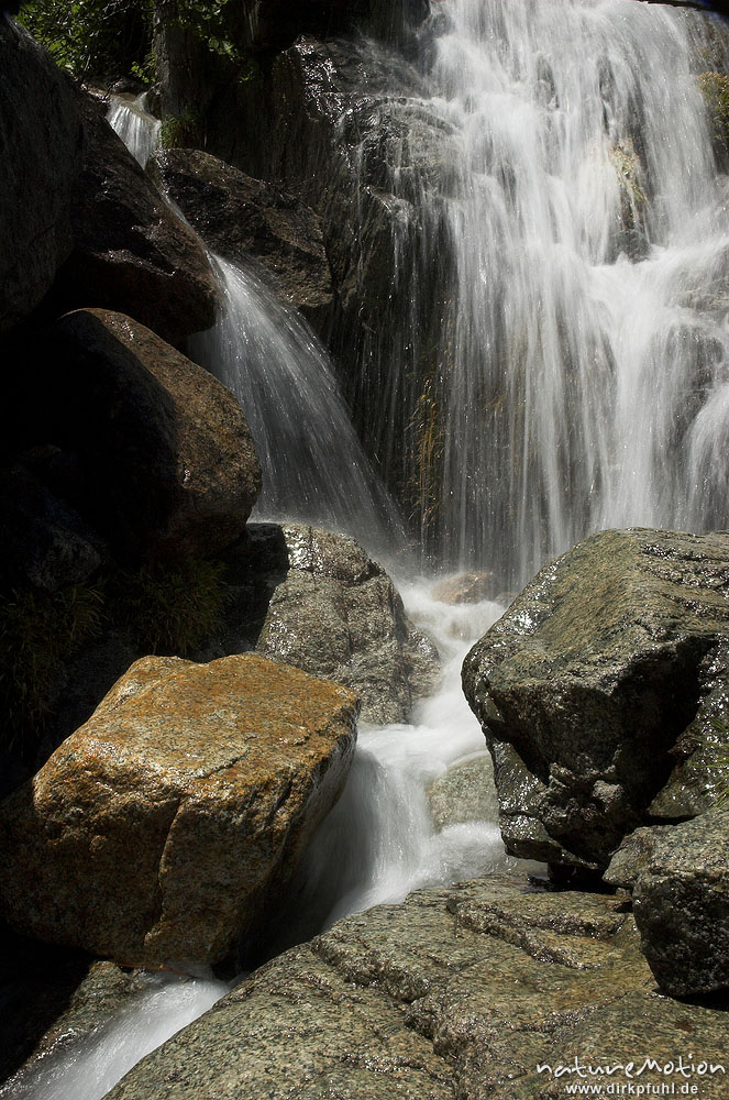 kleiner Wasserfall, Restonica-Tal unterhalb Lac de Melo, Korsika, Frankreich