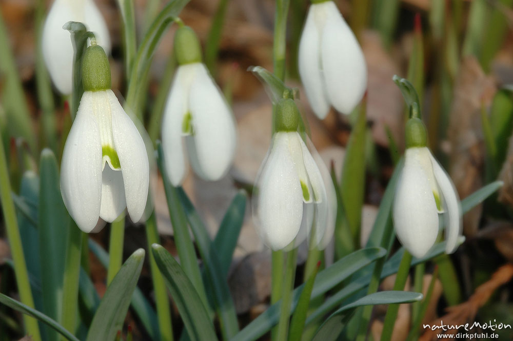Kleines Schneeglöckchen, Galanthus nivalis, Blüten, Botanischer Garten, kombination aus zwei Fotos m, Göttingen, Deutschland