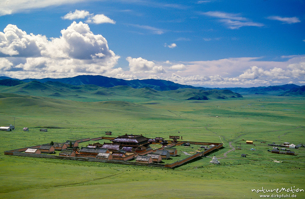 Kloster Amarbajasgalant, gesamte Anlage von hochgelegenem H?gel aus Selenge-Orchon-Bergland, Mongolei
