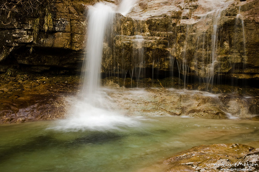 Königsbachfall, Wasserfall, teilweise vereist, Abendlicht Königssee, Deutschland