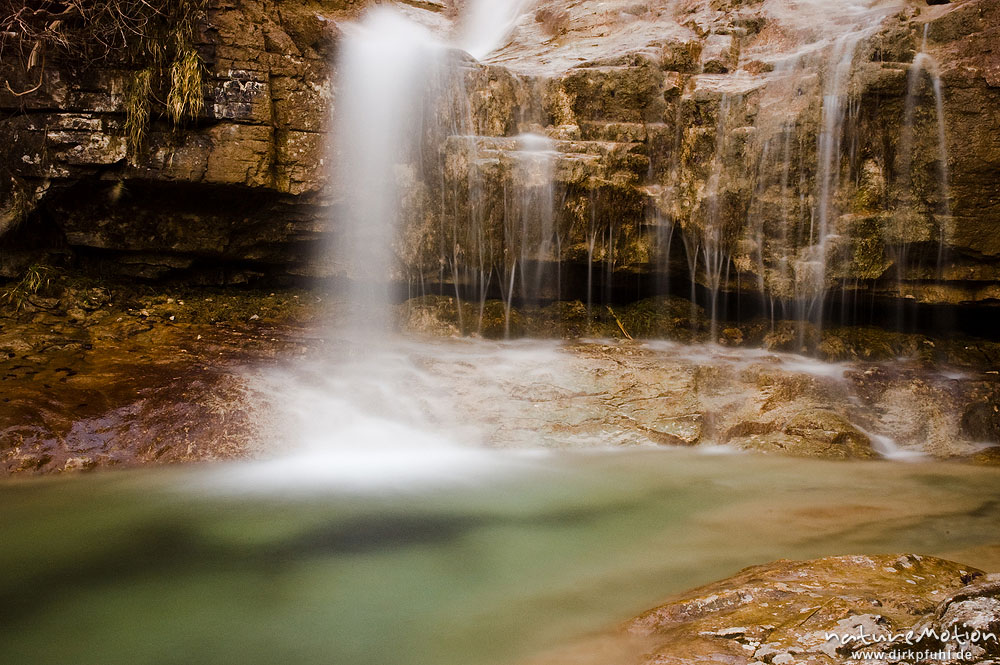 Königsbachfall, Wasserfall, teilweise vereist, Abendlicht Königssee, Deutschland
