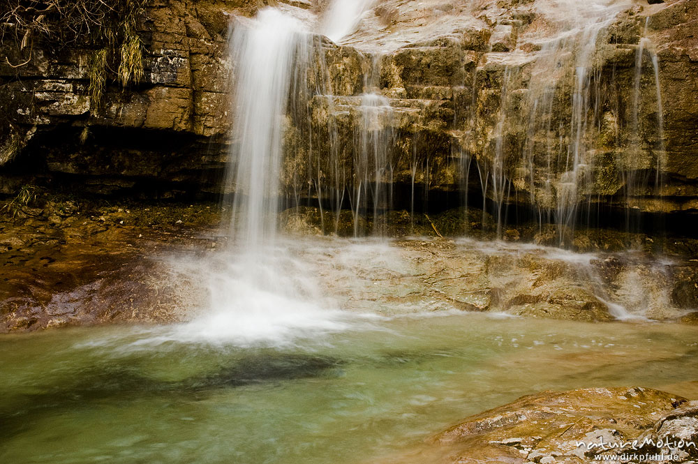 Königsbachfall, Wasserfall, teilweise vereist, Abendlicht Königssee, Deutschland