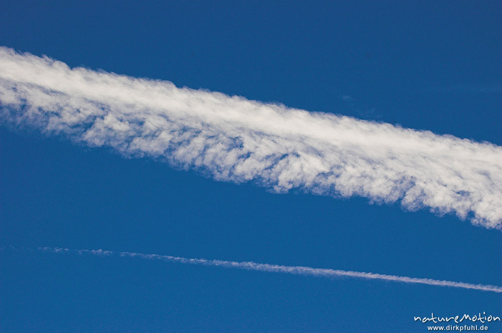 Kondensstreifen, zu Zirrus-Wolke aufgequollen Göttingen, Deutschland