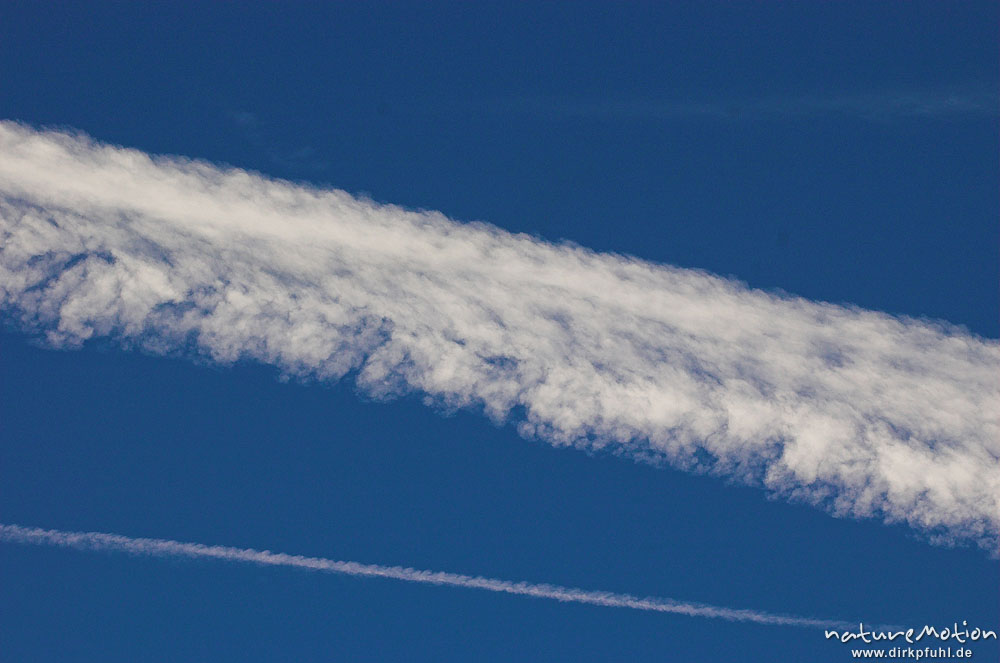 Kondensstreifen, zu Zirrus-Wolke aufgequollen Göttingen, Deutschland