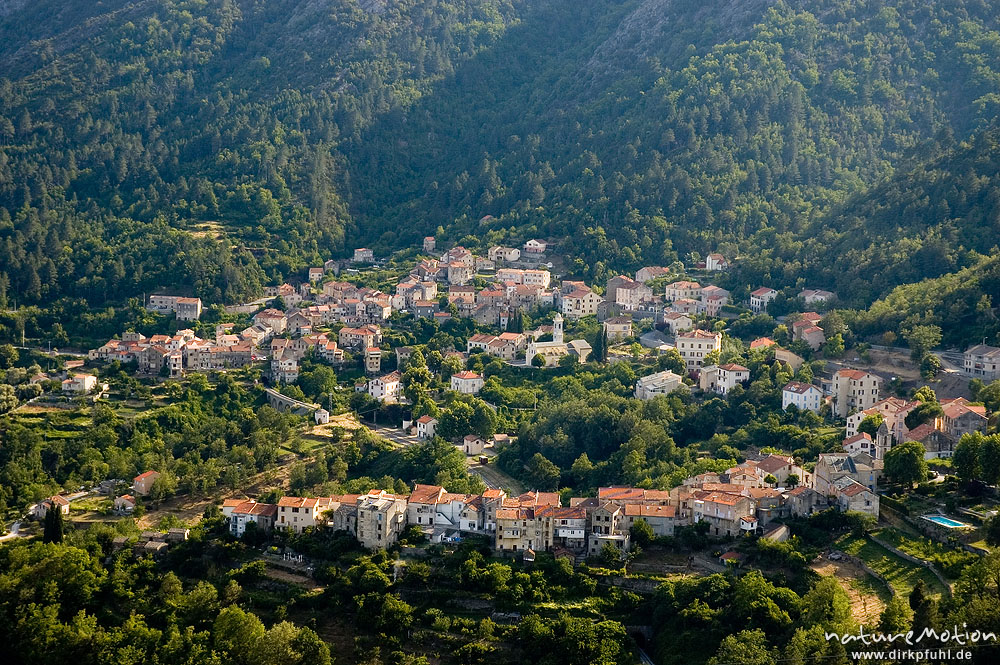 korsisches Bergdorf, Vivario im Abendlicht, Korsika, Frankreich