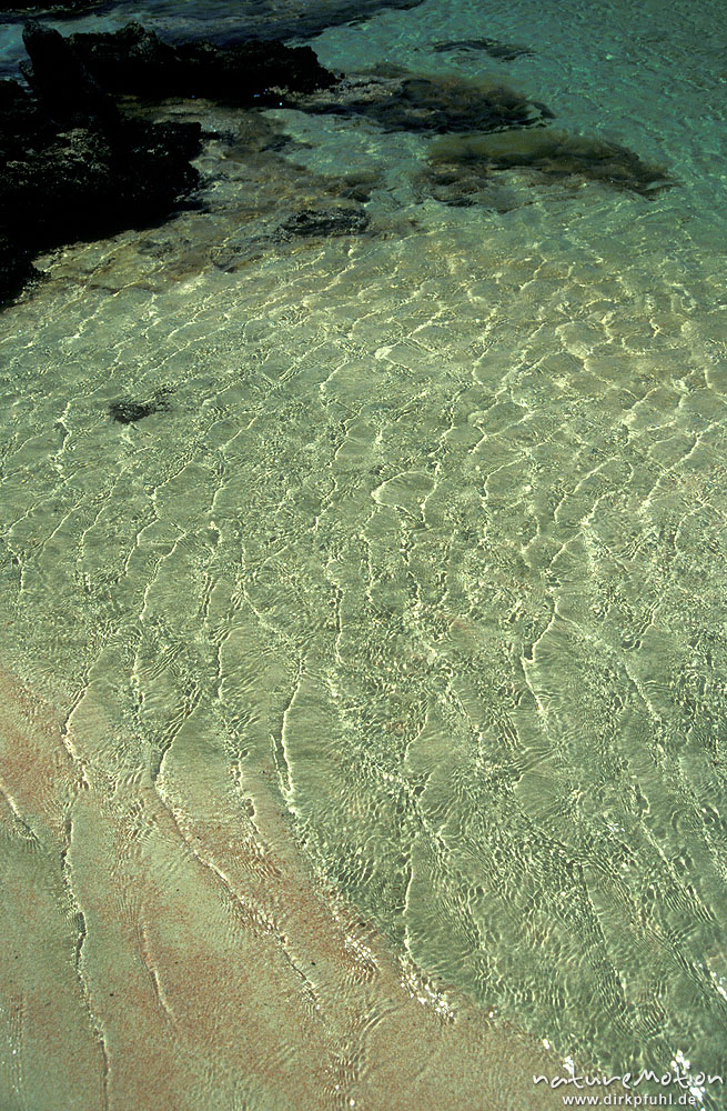 kräuselnde Wasseroberfläche am Strand, Lichtreflexe, roter Korallensand, Strand von Elafonissos bei Sugia, Kreta, Griechenland