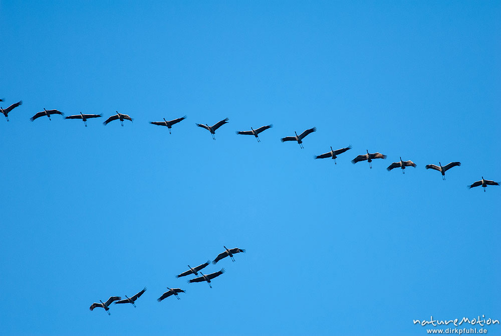 Kranich, Grauer Kranich, Grus grus, Kraniche (Gruidae), Formation beim Zug, A nature document - not arranged nor manipulated, Sababurg, Deutschland