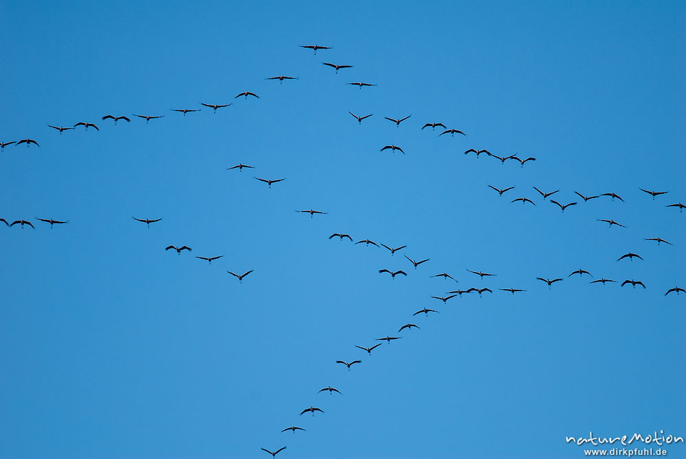 Kranich, Grauer Kranich, Grus grus, Kraniche (Gruidae), Formation beim Zug, A nature document - not arranged nor manipulated, Sababurg, Deutschland