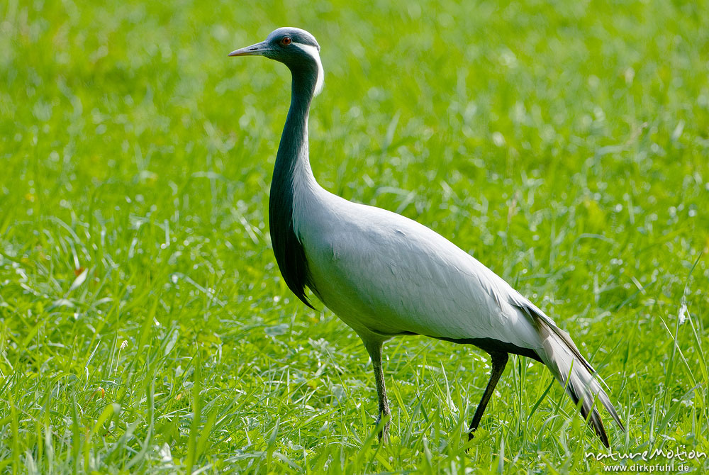 Kranich, Grauer Kranich, Grus grus, Kraniche (Gruidae), Tier auf Wiese, Gehege, Tierpark Sababurg, , Sababurg, Deutschland