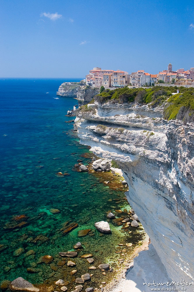 Kreidefelsen von Bonifacio, Häuser am Klippenrand über dem Meer Korsika, Frankreich
