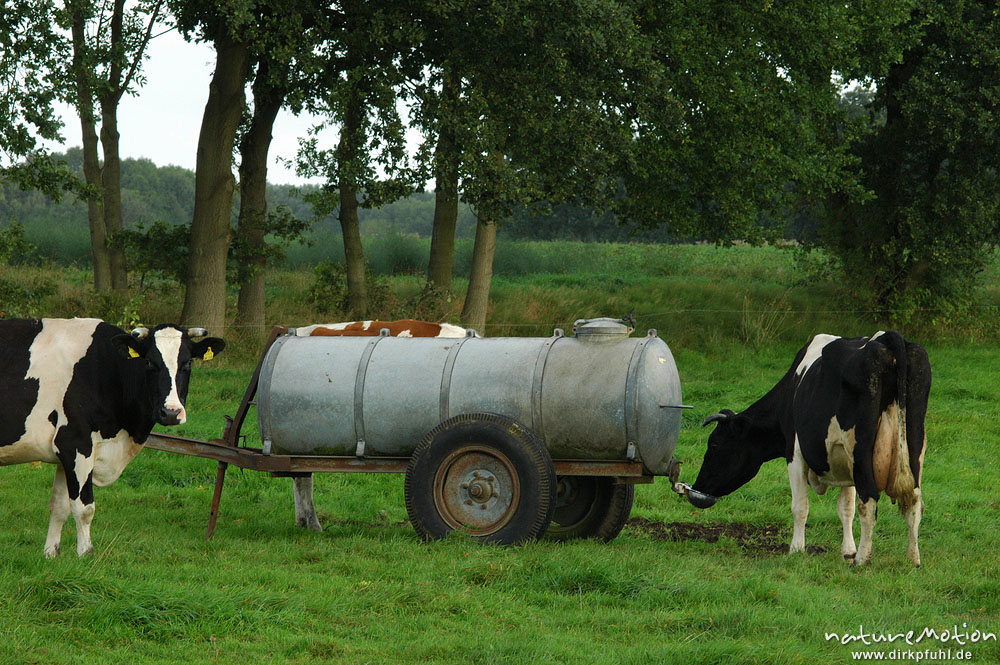 Kühe und Viehtränke, Proitzer Mühle Wendland, Deutschland
